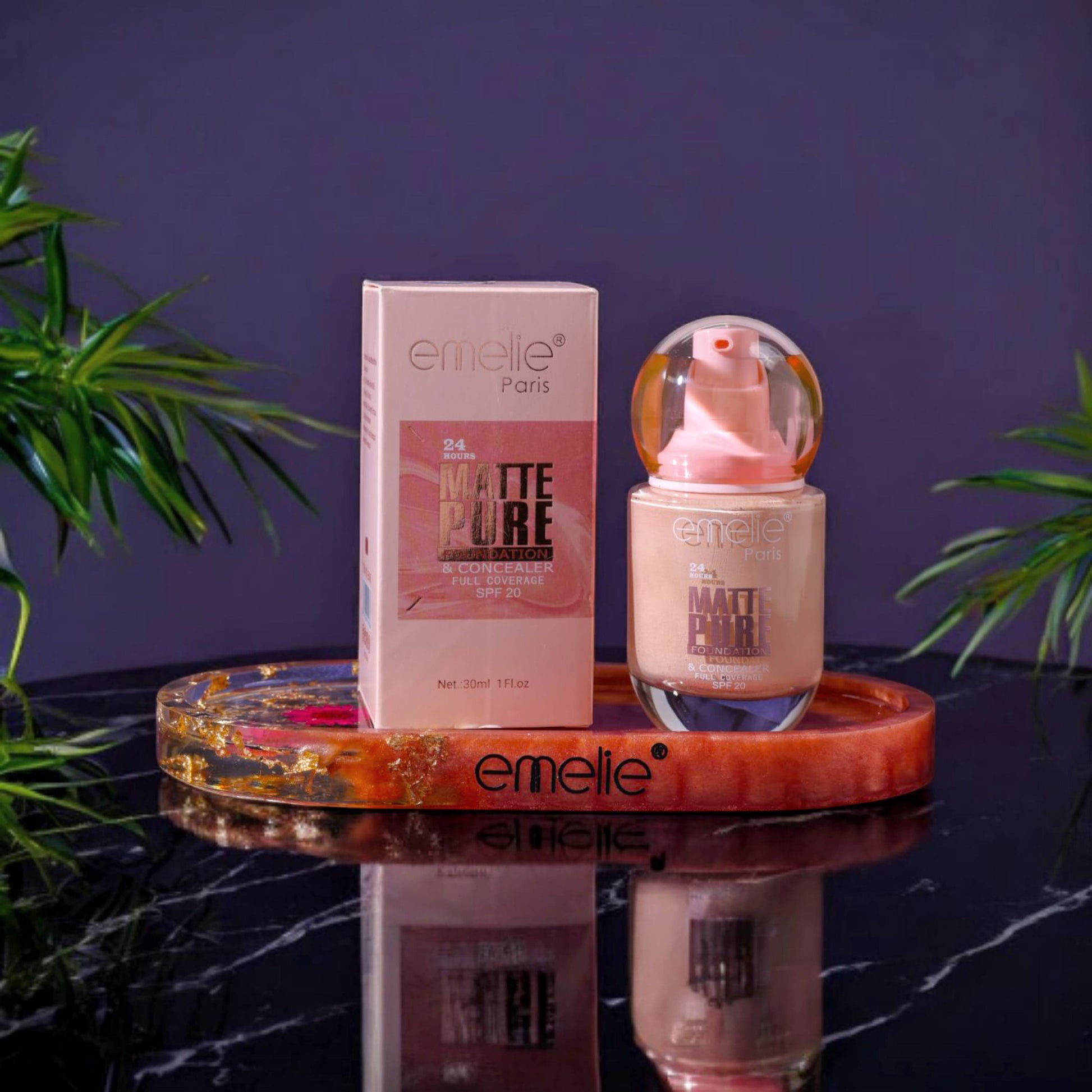 Emelie 24HR Matte Pure Foundation & Concealer – Full Coverage, SPF 20 (30ml)